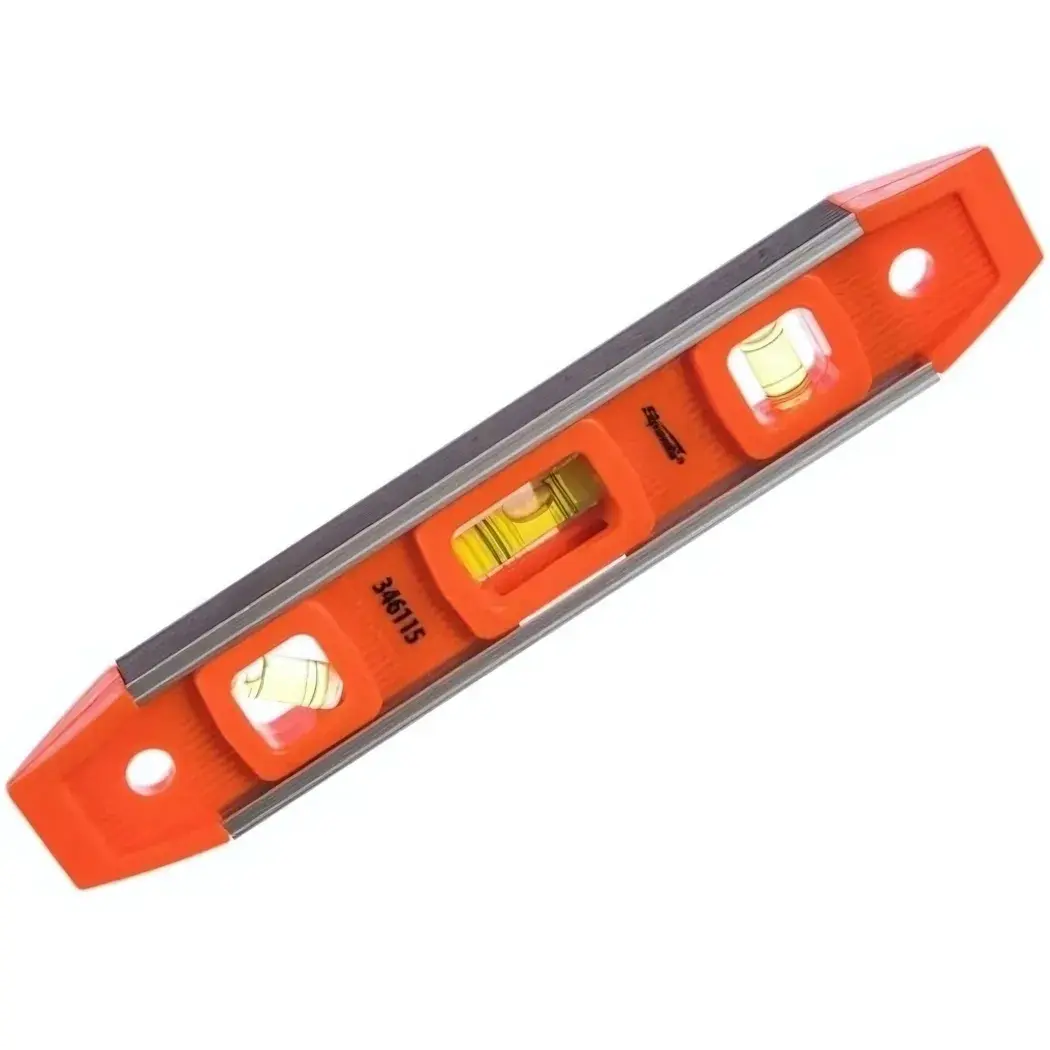 Ярко-оранжевый цвет корпуса обеспечивает хорошую видимость на рабочем месте. Компактные габариты 235 мм позволяют работать в узких пространствах при монтаже сантехники или установке мебели. Рабочая базовая поверхность гарантирует точность измерений, а специальная маркировка помогает быстро ориентироваться при выполнении задач.