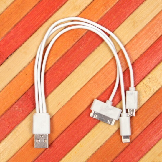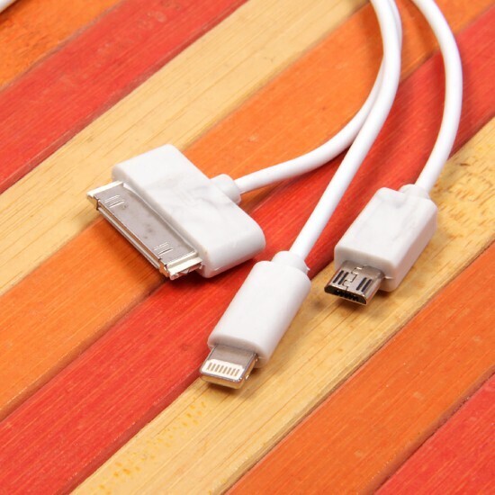 Кабель USB 3 в 1 для Apple iPhone/Micro USB, зарядка 3 устройств, Lightning/Micro USB/30pin, 20 см