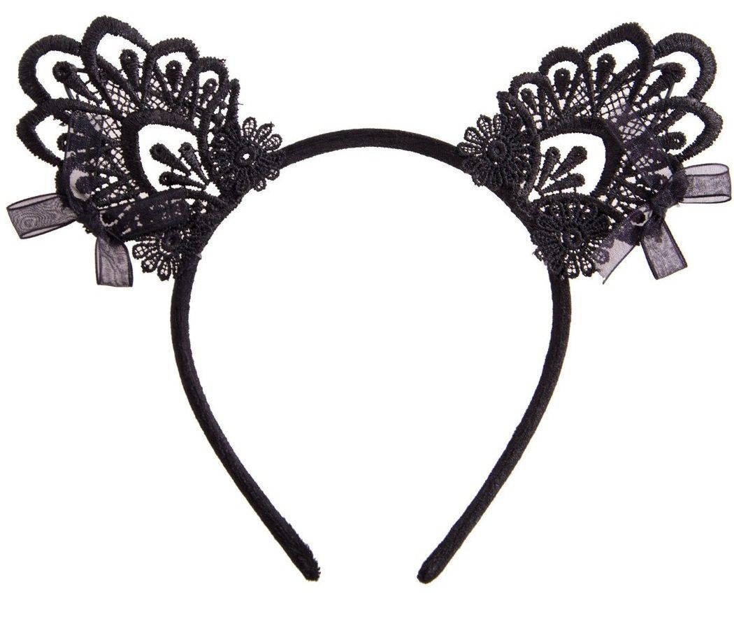 Ободок с кружевными ушками кошечки, черный, на обруче, для ролевых игр и карнавала
