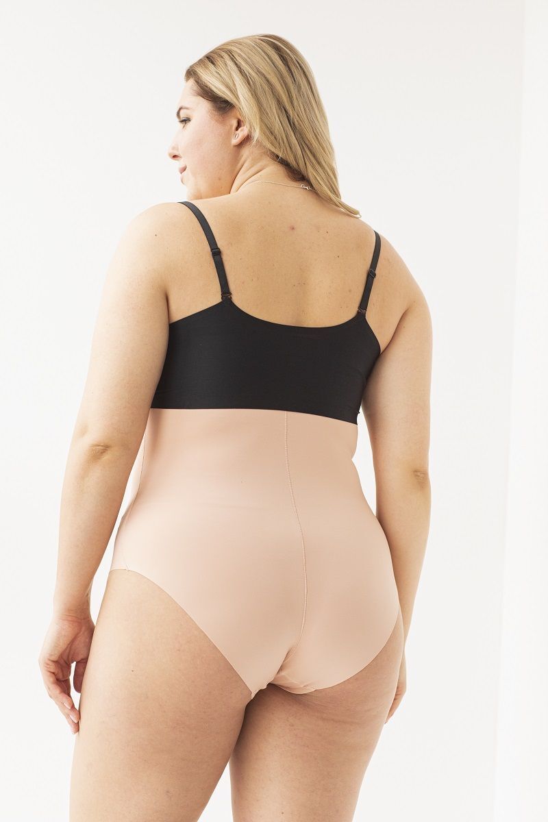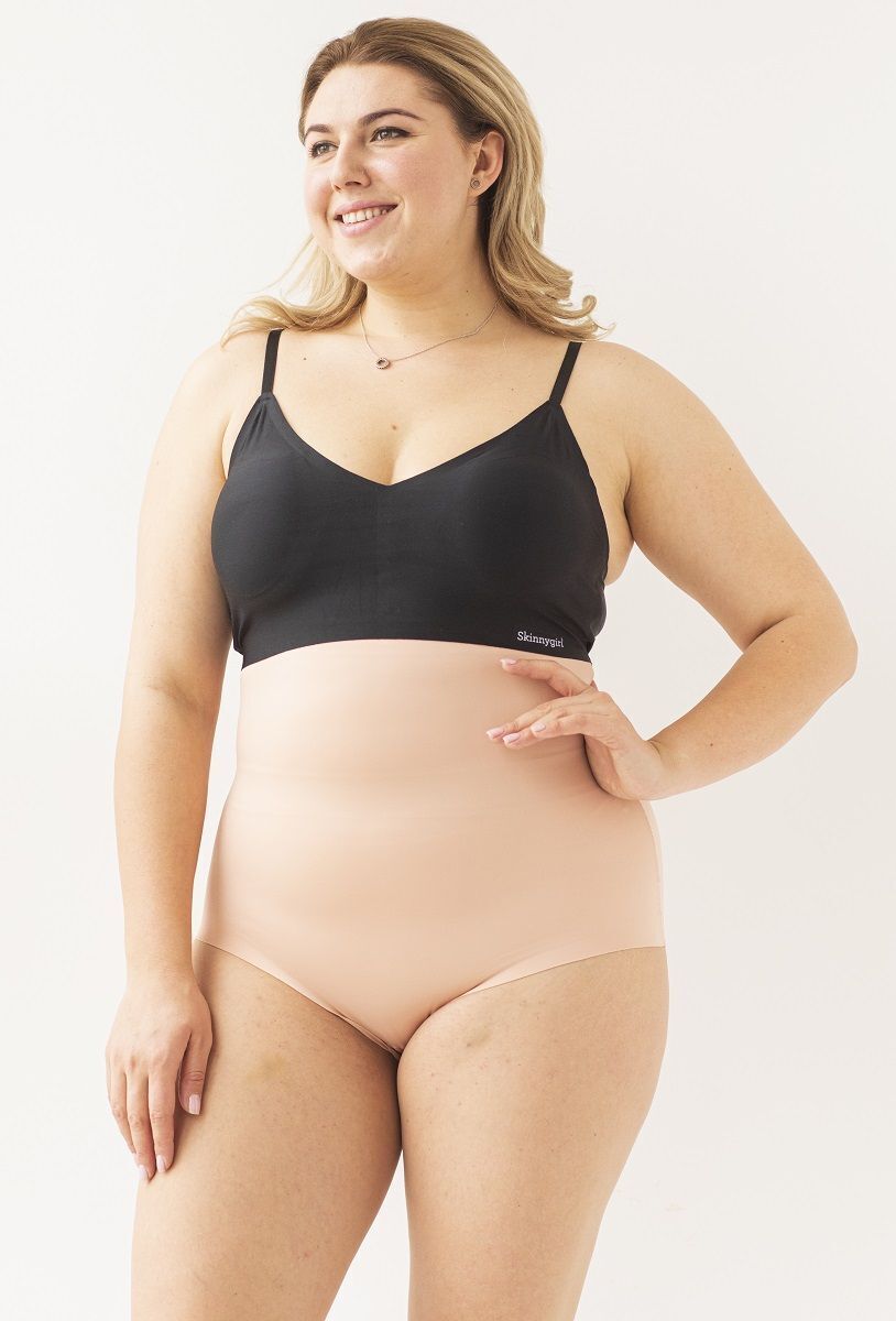 Трусы утягивающие высокая талия Skinny Girl, бежевый, XL, sonic edge, лазерная обработка