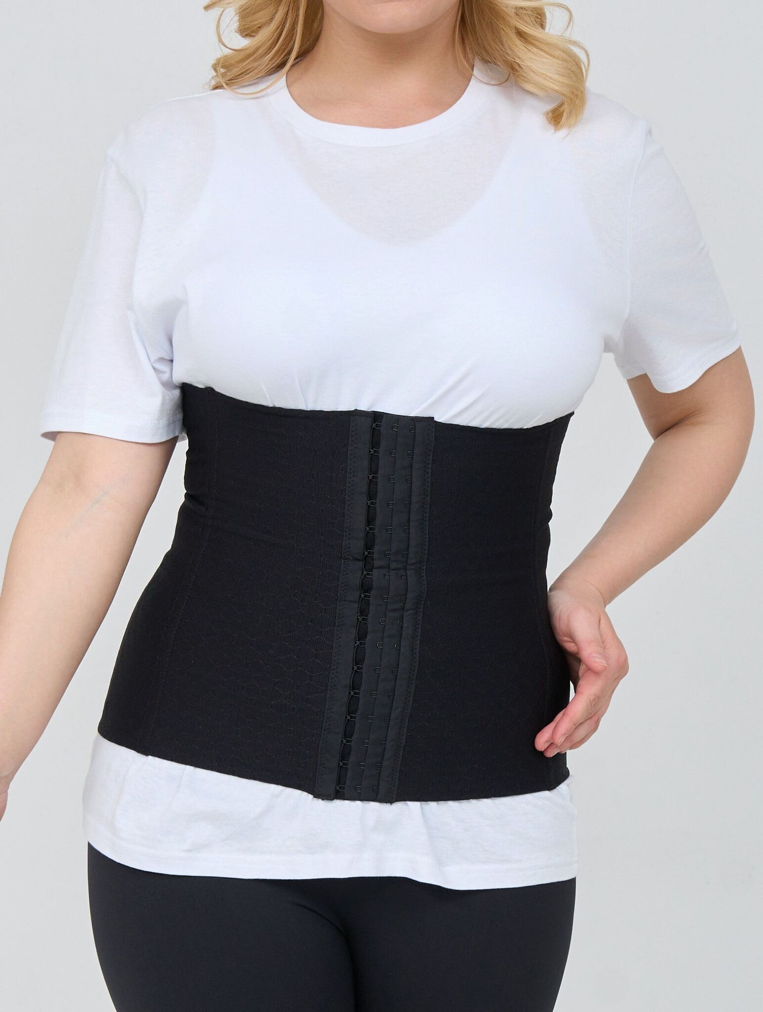 Размер M разработан специально для комфортной посадки и эффективной коррекции фигуры. Материал сохраняет форму после многократных стирок, а застежка-крючки обеспечивают надежную фиксацию.