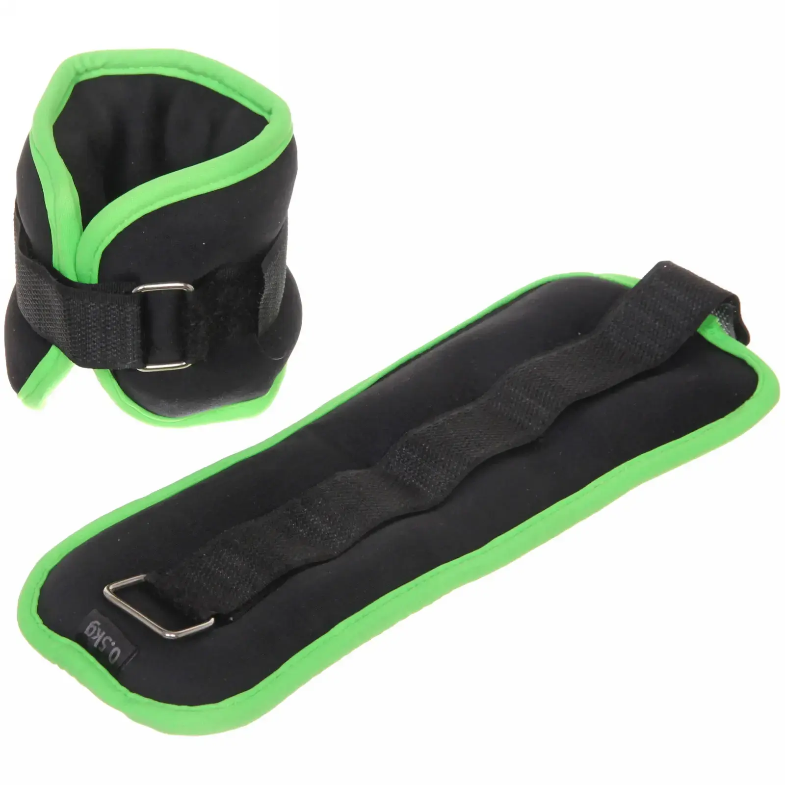 Каждый утяжелитель весит 0,25 кг, в комплекте идут два утяжелителя, что в сумме составляет 0,5 кг. Они выполнены из прочного неопрена и металла, что обеспечивает долговечность и надежность. Черный цвет с яркими зелеными акцентами делает их стильными и современными. Эти утяжелители идеально подойдут как для домашних тренировок, так и для занятий в спортзале.