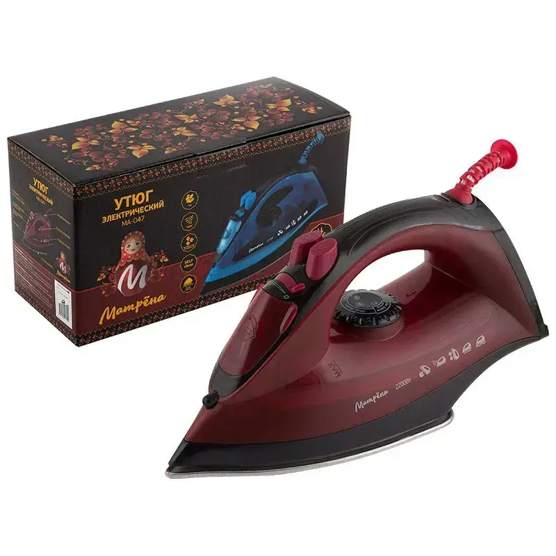 Утюг электрический «Матрёна» MA-047, вишневый, 2200Вт, пар/спрей/самоочистка, стальная подошва