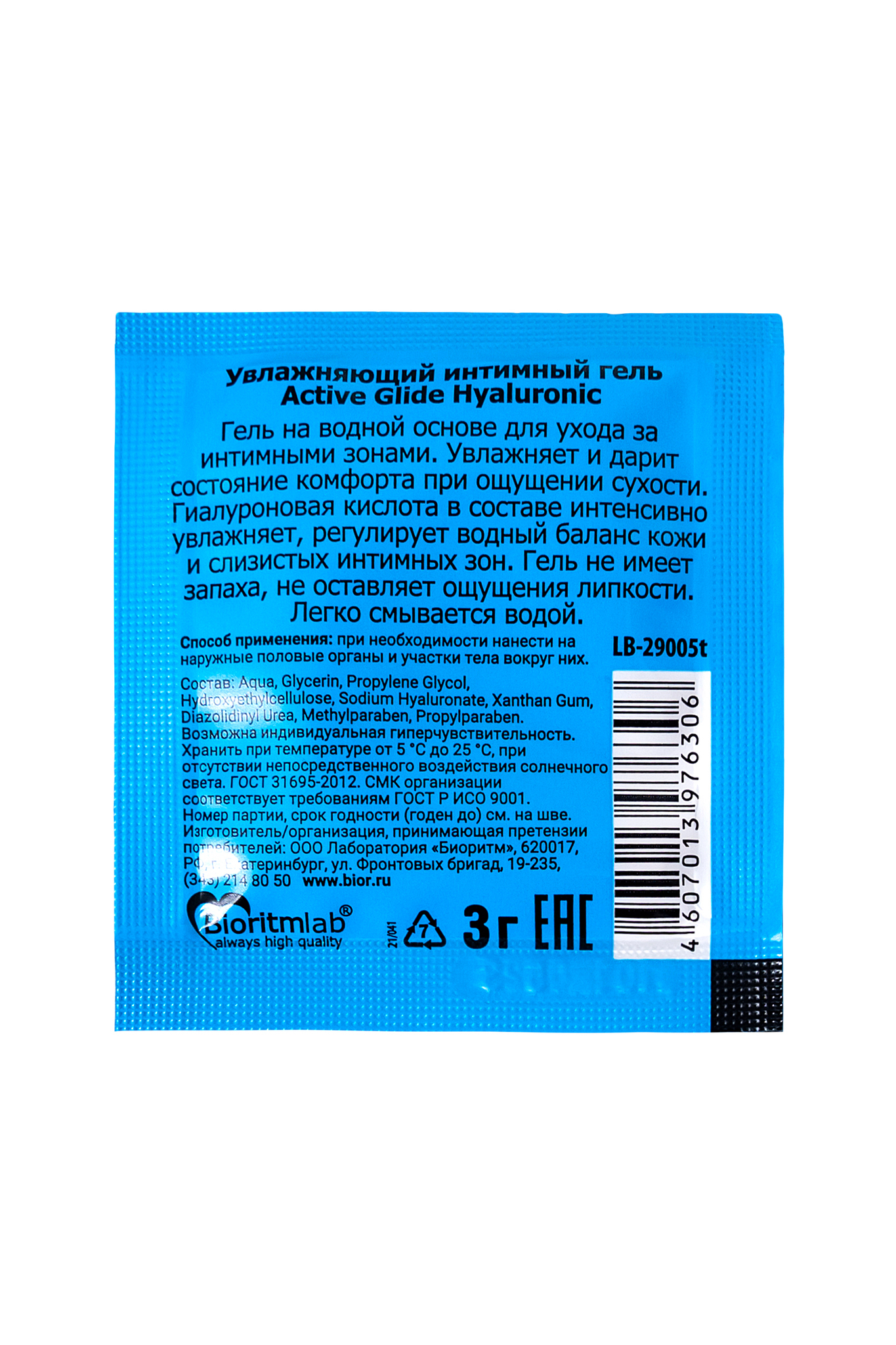 Объем упаковки составляет 3 грамма, что делает его идеальным для одноразового использования. Упаковка выполнена в ярко-синем цвете и имеет прямоугольную форму, что удобно для хранения и транспортировки. Гель не содержит вредных добавок и подходит для регулярного использования.