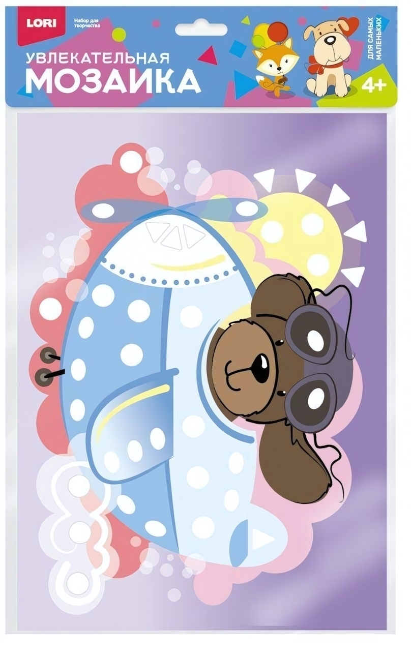 Мозаика для творчества Lori "Собачка-пилот", аппликация наклейками, развивающая, от 4 лет
