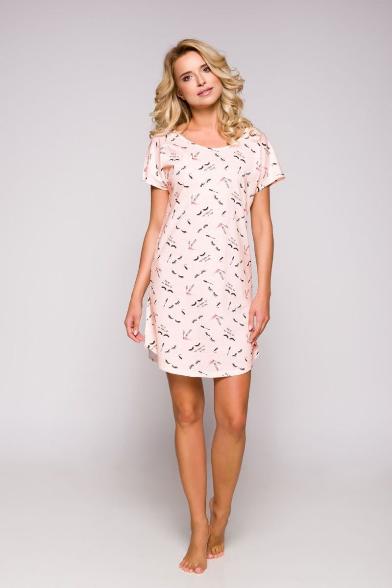 Сорочка женская хлопковая Amber, свободный крой, принт "реснички", размер XL, цвет персиковый