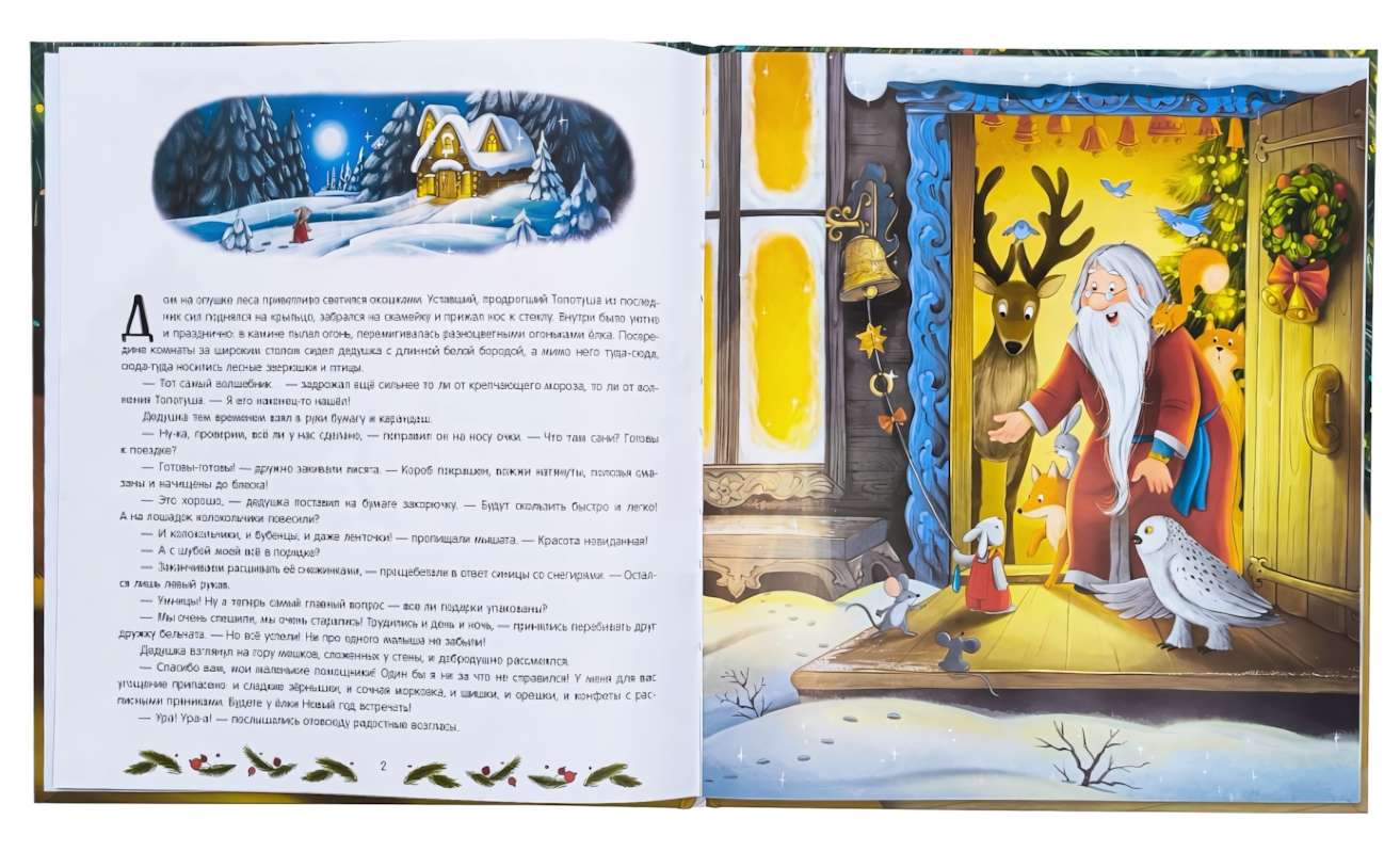 Книга имеет стандартный размер для детских изданий — приблизительно A4 и состоит из 32 страниц. Яркие цвета и качественная печать делают её не только приятной для чтения, но и красивой в оформлении. Подарите своему ребенку возможность окунуться в мир сказок и волшебства с "Новогодним чудом для Топотуши"!