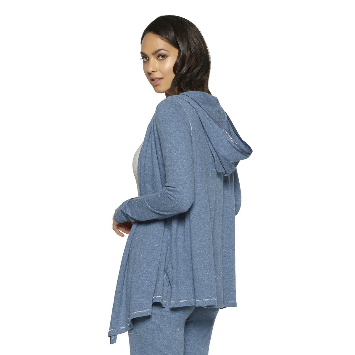 кардиган paramour с капюшоном и люрексом, размер L, синий, 98% хлопок
