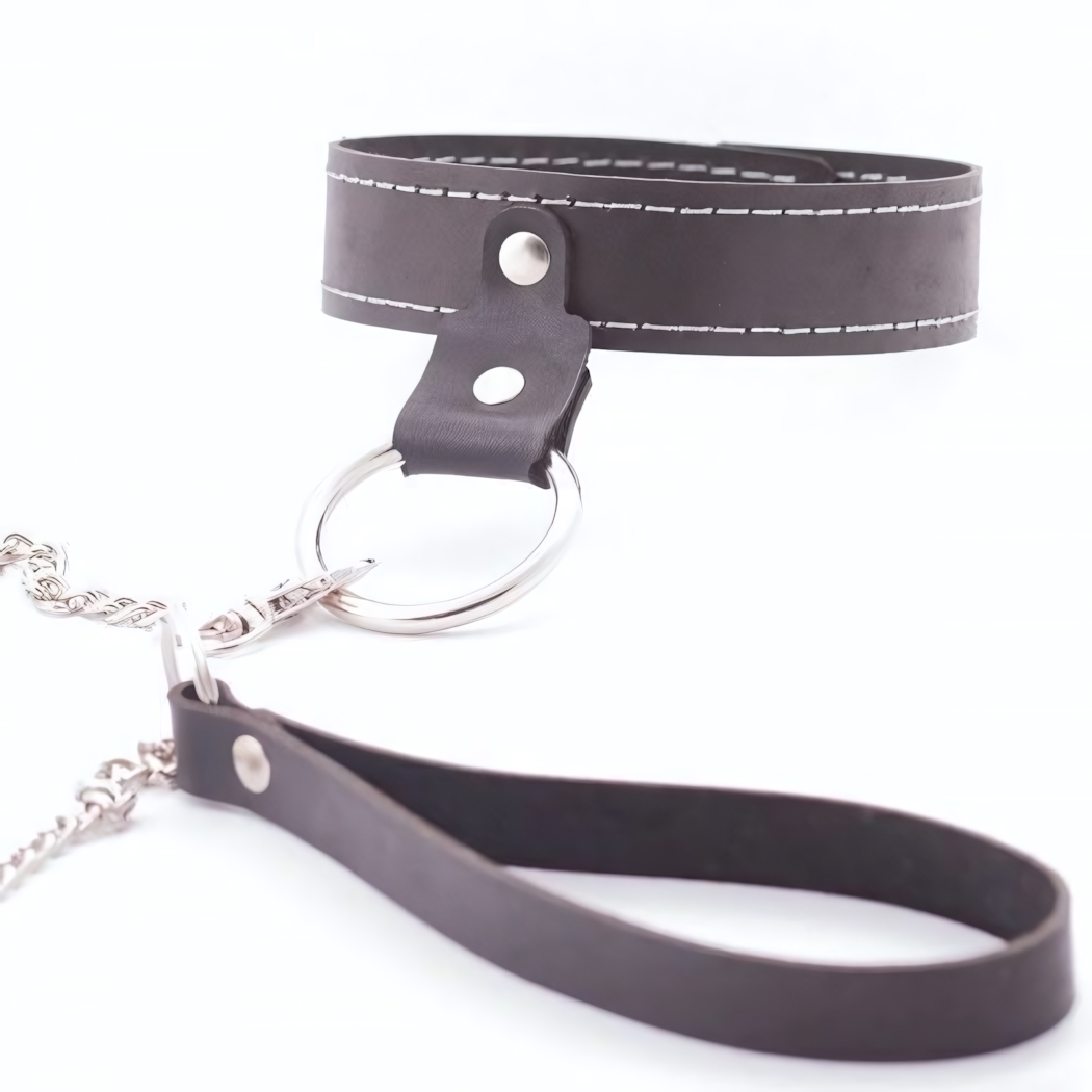 Узкий однослойный ошейник с поводком