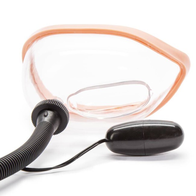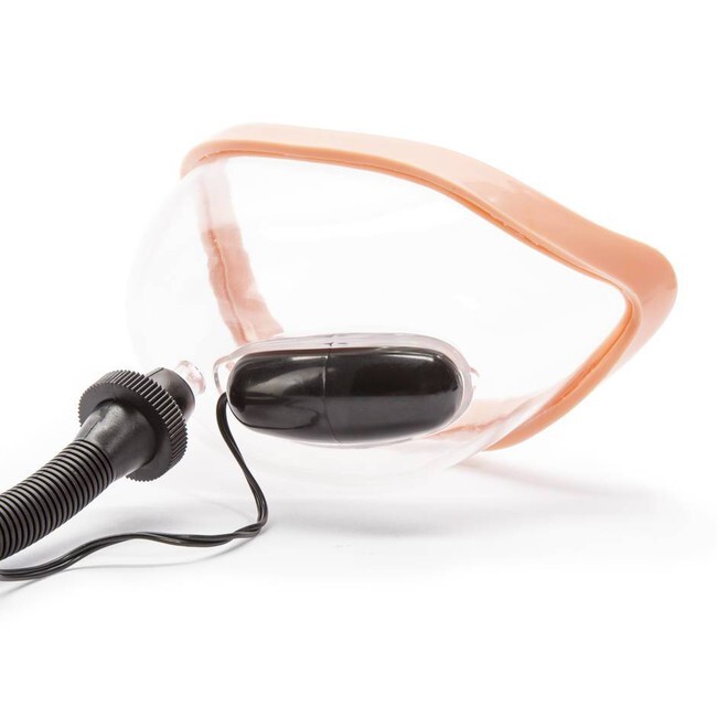 Вагинальная помпа с вибрацией, вакуумная чаша 14х8 см + вибро-яйцо, ПВХ/пластик, прозрачный с черным