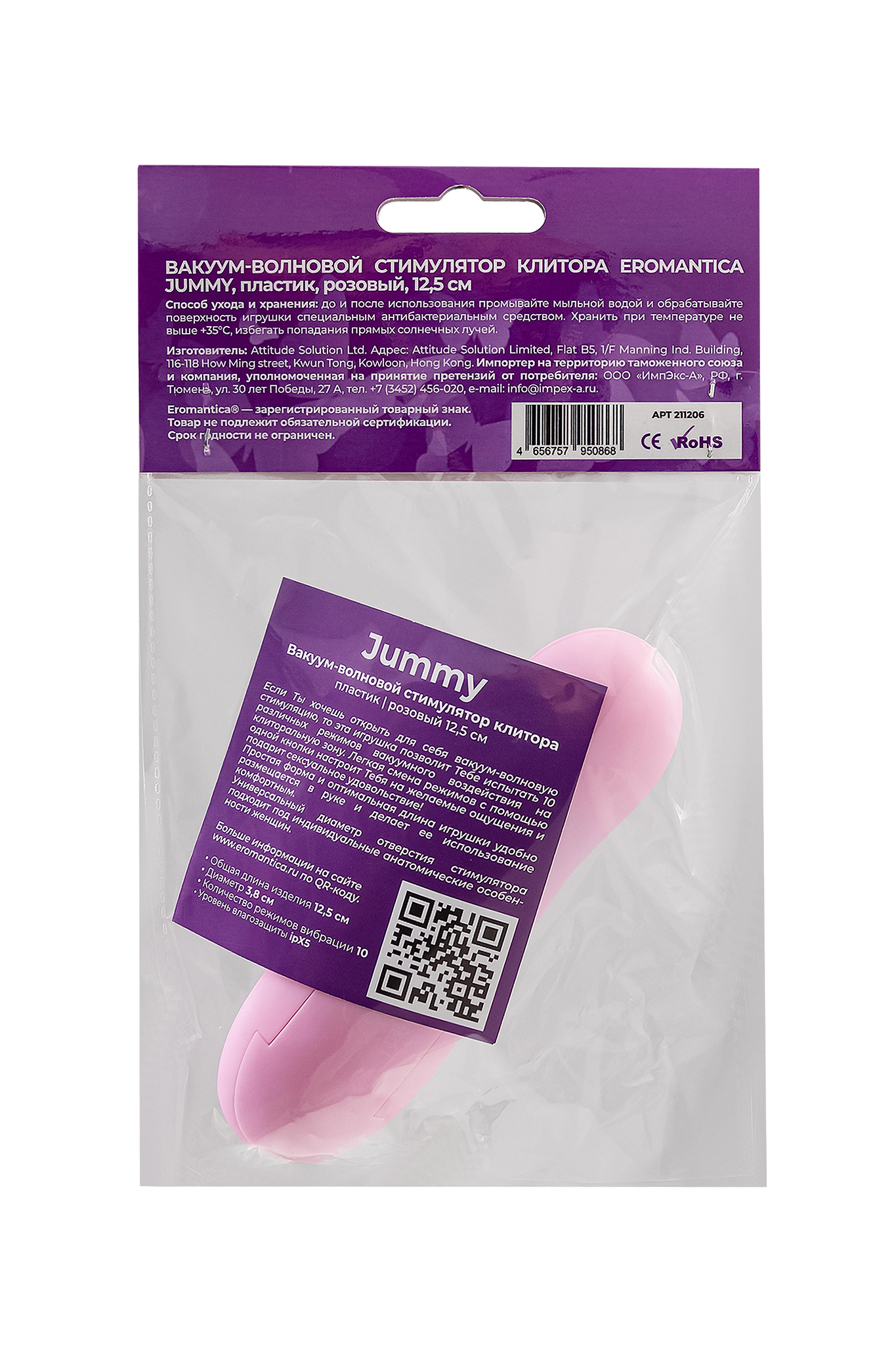 Стимулятор 'Jummy' идеально подходит как для опытных пользователей, так и для тех, кто только начинает знакомство с вакуумной стимуляцией. Легкая смена режимов с помощью одной кнопки позволяет быстро настроить устройство под ваши предпочтения. Рекомендуем использовать смазку на водной основе для максимального комфорта и удовольствия.
