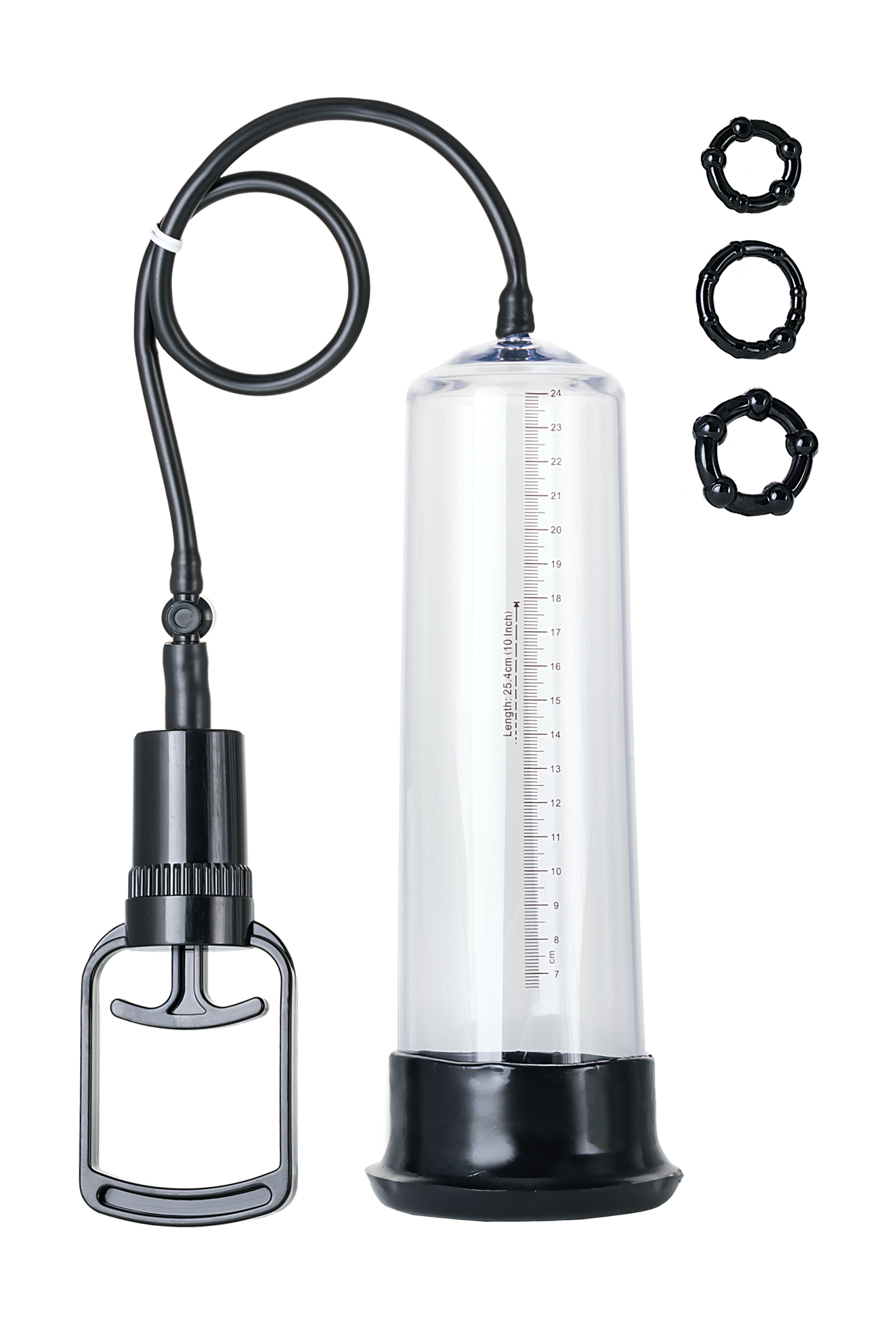 Помпа выполнена из прочного PVC, что обеспечивает долговечность и надежность. Цвет изделия — черный с прозрачной трубкой, что позволяет визуально контролировать процесс. В комплект входят три черных кольца, которые могут быть использованы как дополнительные аксессуары для улучшения эффекта. Помпа подходит для мужчин, которые хотят улучшить свою интимную жизнь и повысить уверенность в себе.