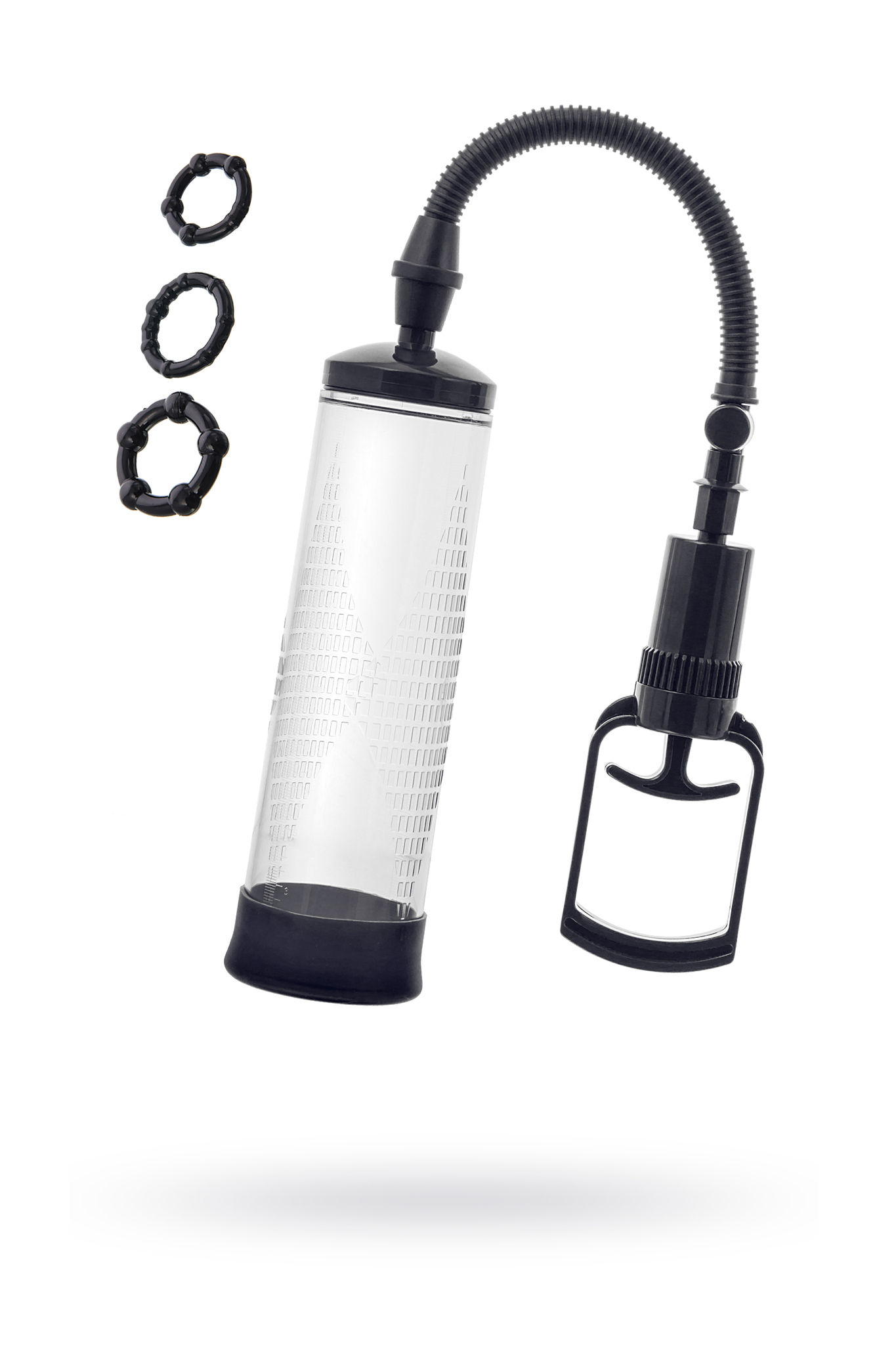 Вакуумная помпа для усиления эрекции, 22 см, ABS-пластик, черный цвет + 3 кольца в подарок