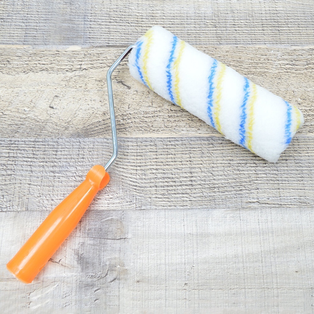 Ширина валика составляет 17,5 см, что делает его идеальным для работы в труднодоступных местах. Белый цвет шубки с синими и желтыми полосами не только привлекает внимание, но и позволяет легко контролировать процесс покраски. Этот валик станет незаменимым инструментом в вашем арсенале для ремонта и отделки.