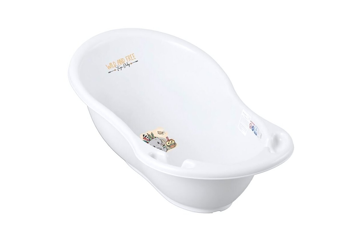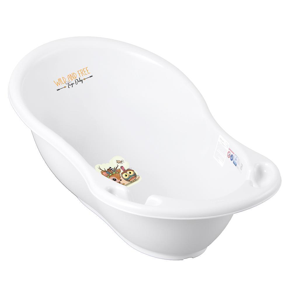 Ванна имеет белый цвет и овальную форму, что делает ее стильным дополнением к любому интерьеру. Размеры 86 см идеально подходят для комфортного купания. Внутреннее оформление с изображением животных и надписью "WILD AND FREE" добавляет элемент веселья и радости в процесс купания. Эта ванна станет незаменимым помощником для родителей, заботящихся о комфорте и безопасности своих детей.