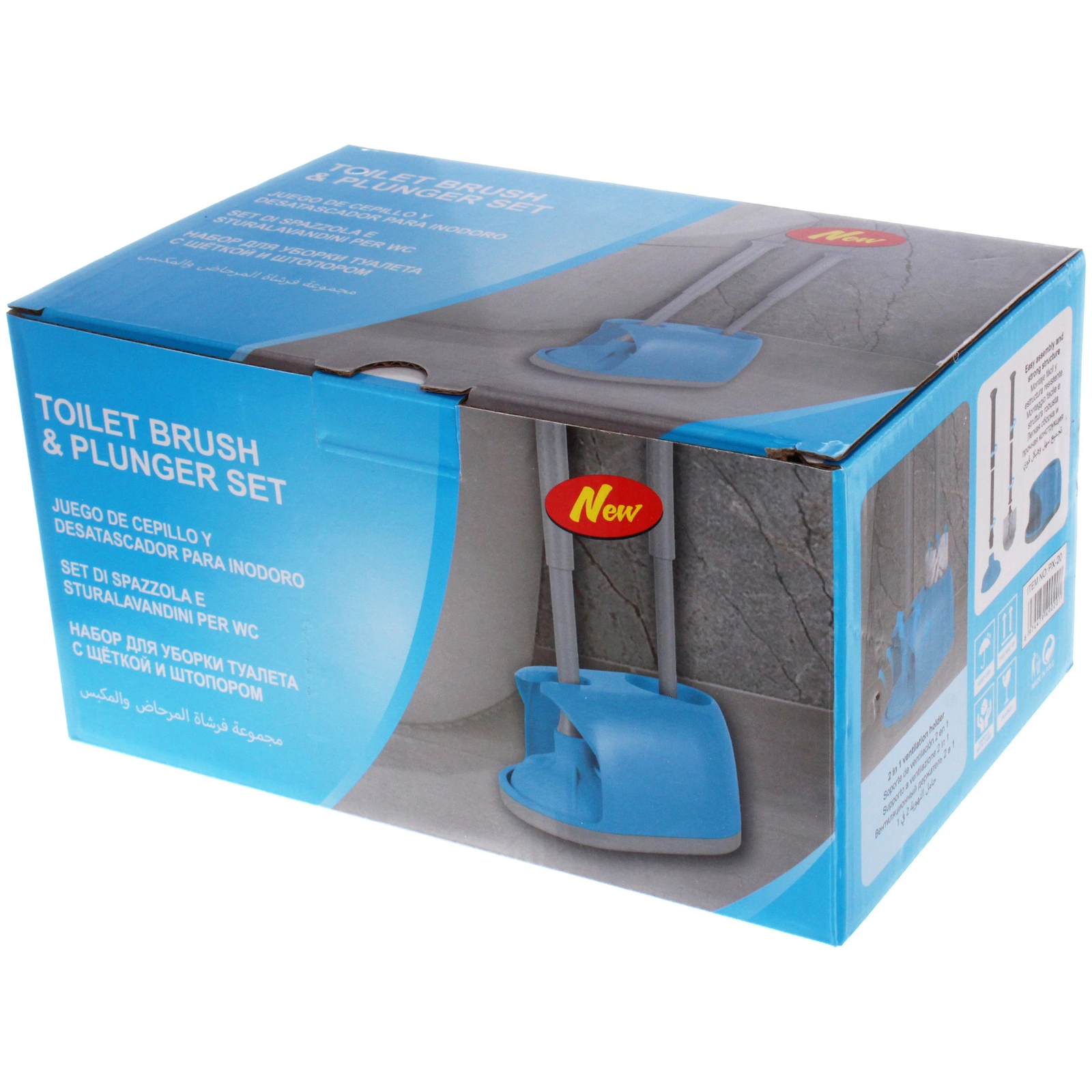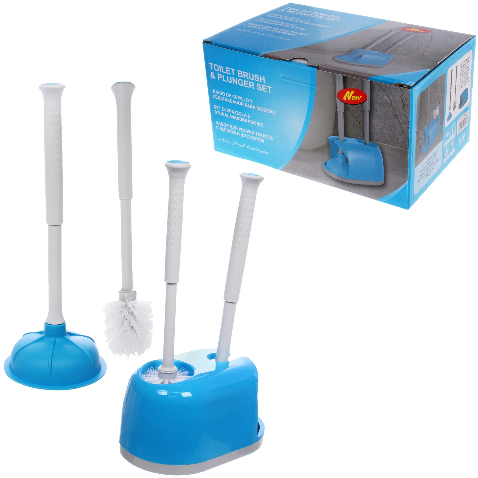 Набор выполнен из пластика в синем и сером цветах, щетина ершика — белая. Резиновая чаша вантуза обеспечивает плотное прилегание к поверхности, а густая синтетическая щетина эффективно очищает внутреннюю часть унитаза. Изделие легко собирается и не требует сложного ухода — достаточно промывать элементы водой по мере необходимости.