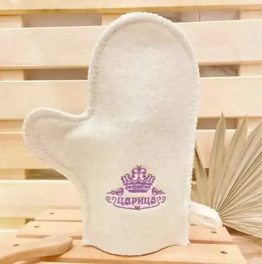 Варежка выполнена из мягкого фетра, что обеспечивает комфорт при использовании. Размеры варежки идеально подходят для большинства рук, а контрастные швы добавляют ей прочности и стиля. Не упустите возможность сделать ваши банные процедуры более приятными и безопасными с варежкой «Царица»!
