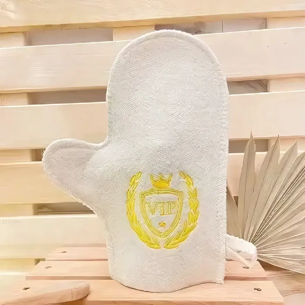 Варежка банная 'VIP' с вышивкой, белая, шерсть/полиэфир, защита от ожогов