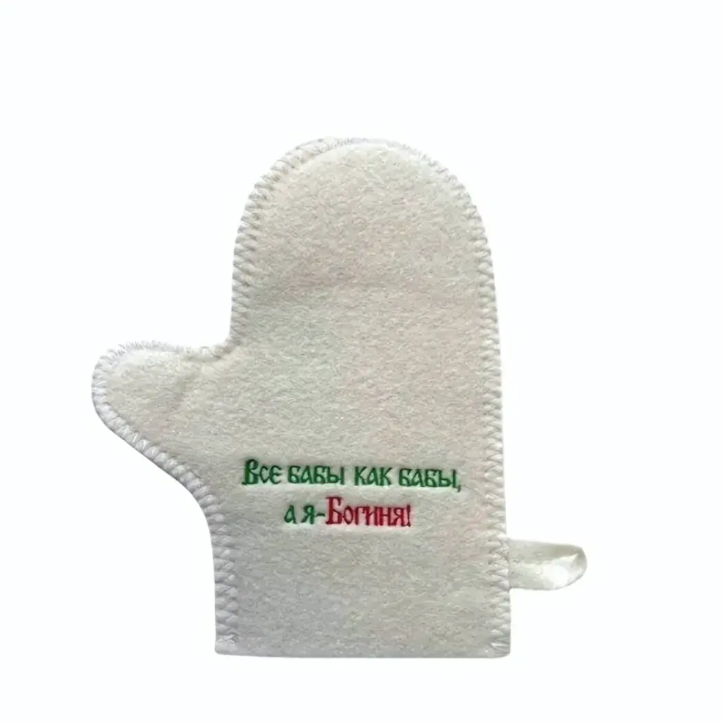 Варежка банная 'Все бабы как бабы, а я богиня', войлок, белая с вышивкой