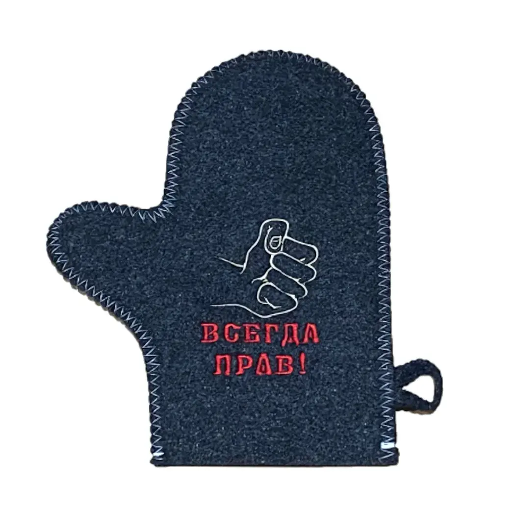Эта варежка станет незаменимым помощником на вашей кухне, добавляя нотку юмора и стиля в процесс готовки. Изготовленная из качественного войлока, она обеспечивает надежную защиту ваших рук от горячих предметов. С вышивкой «Всегда прав» вы не только защитите себя, но и поднимете настроение всем, кто будет рядом.