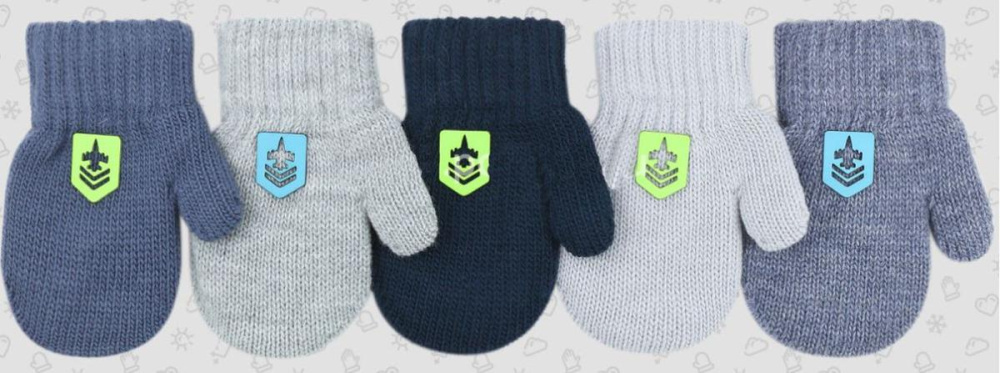 Размер 12 оптимально подойдет для многих детей дошкольного возраста. разноцветный принт — при заказе отгружается один товар, цвет определяется случайным образом. На лицевой стороне варежек размещены небольшие декоративные значки, которые добавляют оригинальности и выделяют изделие среди других.