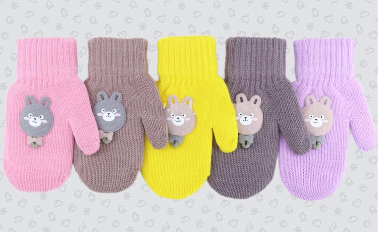 Варежки представлены в пяти различных цветах, среди которых розовый, коричневый, желтый, серый и фиолетовый, с аппликациями в виде милых животных, что обязательно привлечет внимание ваших детей. Обратите внимание, что при покупке варежек вам будет отгружён один товар, цвет определяется случайным образом.