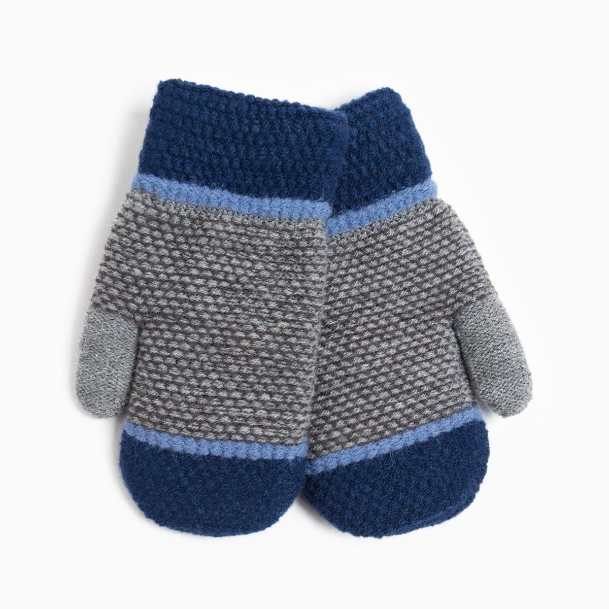 Варежки детские зимние, мягкие и теплые, сине-серые, размер 16