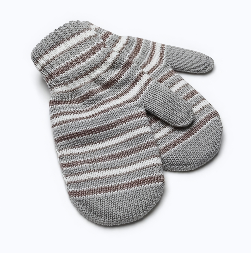 Варежки детские двойные, серый с коричневым, акрил, размер 14