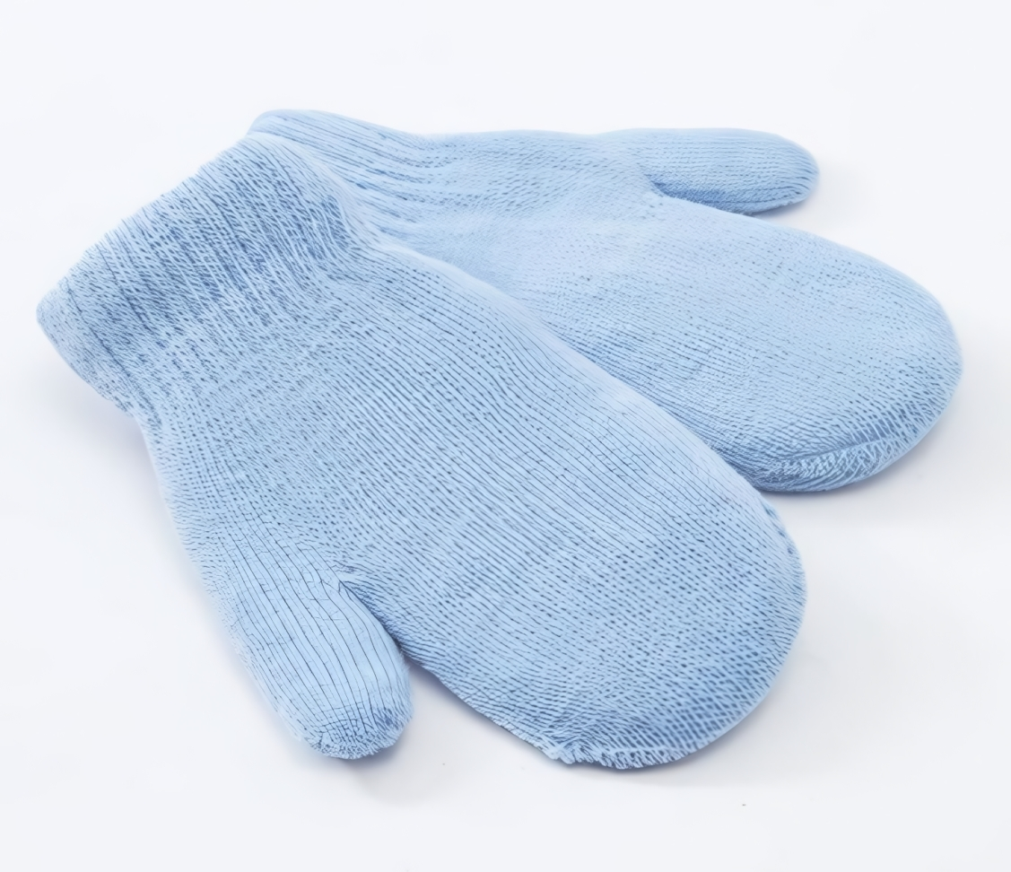 Варежки имеют классическую форму с отдельным отделением для большого пальца и общим пространством для остальных четырёх пальцев, что упрощает надевание и снятие. Тёплая внутренняя подложка удерживает тепло даже при длительном ношении, а гладкая поверхность не вызывает раздражения кожи.