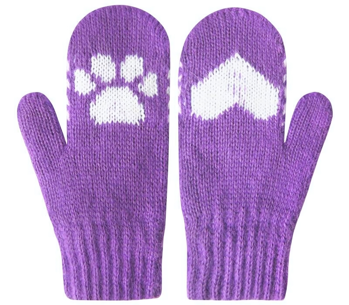 Варежки "Лапки" — это сочетание нежного дизайна и практичности. Мягкий сиреневый цвет с аккуратным белым узором в виде следов лап и сердца создаёт тёплое, домашнее настроение, а натуральная шерсть в составе помогает сохранить тепло даже в холодную погоду.