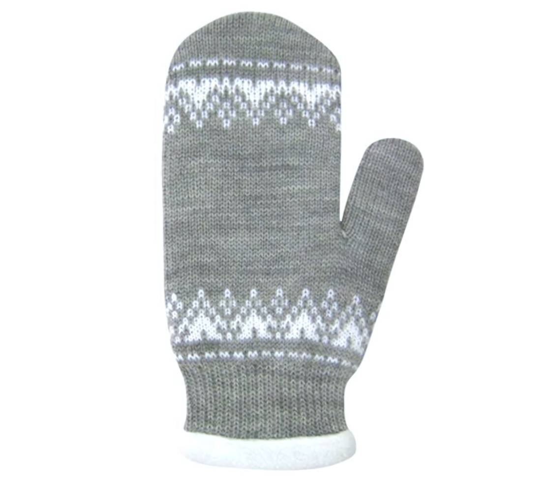 Варежки теплые, уютный орнамент, серый/белый, размер 18, флисовая подкладка, длинный манжет, идеальны для зимних игр