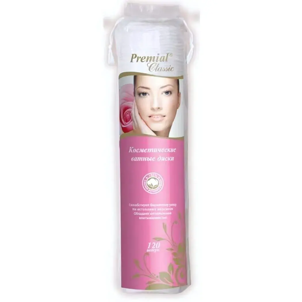 Позаботьтесь о своей коже с помощью ватных дисков 'Premial Classic'. Их мягкая текстура из 100% хлопка обеспечивает бережное очищение и нанесение косметических средств без раздражения.