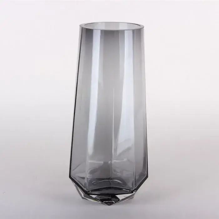 Ваза стеклянная шестигранная 25см, прозрачный серый, стильный декор для интерьера
