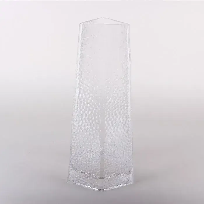 Ваза стеклянная декоративная с рельефным узором, прозрачная, 27.5см, восьмигранная форма