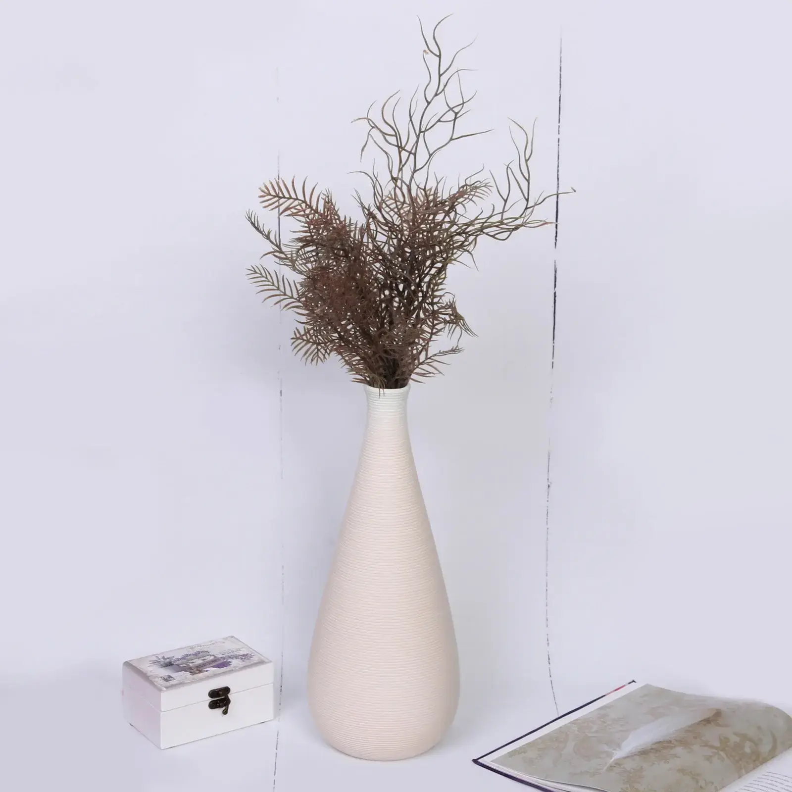 Добавьте изысканный штрих в ваш интерьер с помощью этой элегантной керамической вазы, идеально подходящей для сухих цветов и декоративных веток. Стильный дизайн и нейтральный цвет делают её универсальной для различных стилей оформления, а размеры 15*36 см позволяют разместить её в любом помещении — гостиной, спальне или прихожей.