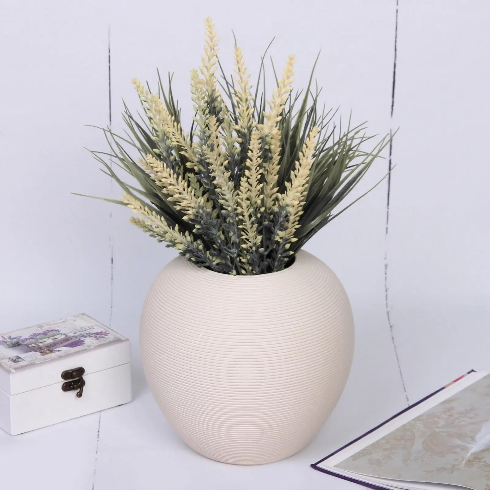 Эта керамическая ваза обладает изысканным дизайном, который прекрасно дополняет различные стили интерьера. Ее универсальный светлый бежевый цвет и гладкая матовая поверхность с тонкими горизонтальными рифлениями создают уютную атмосферу в вашем доме или офисе. Ваза идеально подходит для размещения сухоцветов или декоративных элементов, придавая интерьеру завершенность и шарм.