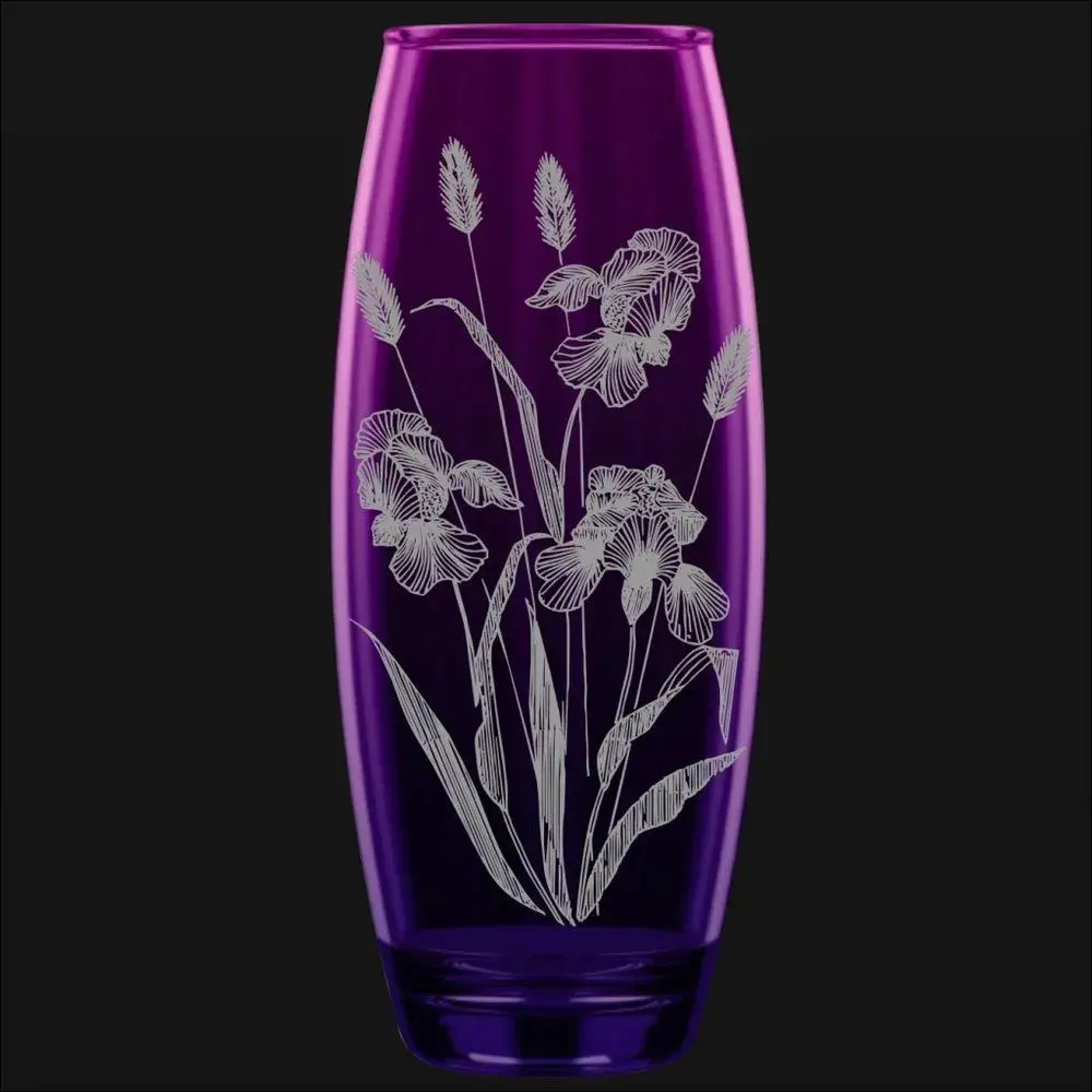 Прозрачное стекло с фиолетовым отливом и тончайшая гравировка в виде ирисов превращают обычную вазу в арт-объект. Поставьте её на стол, комод или подоконник — и гостиная сразу заиграет новыми красками.