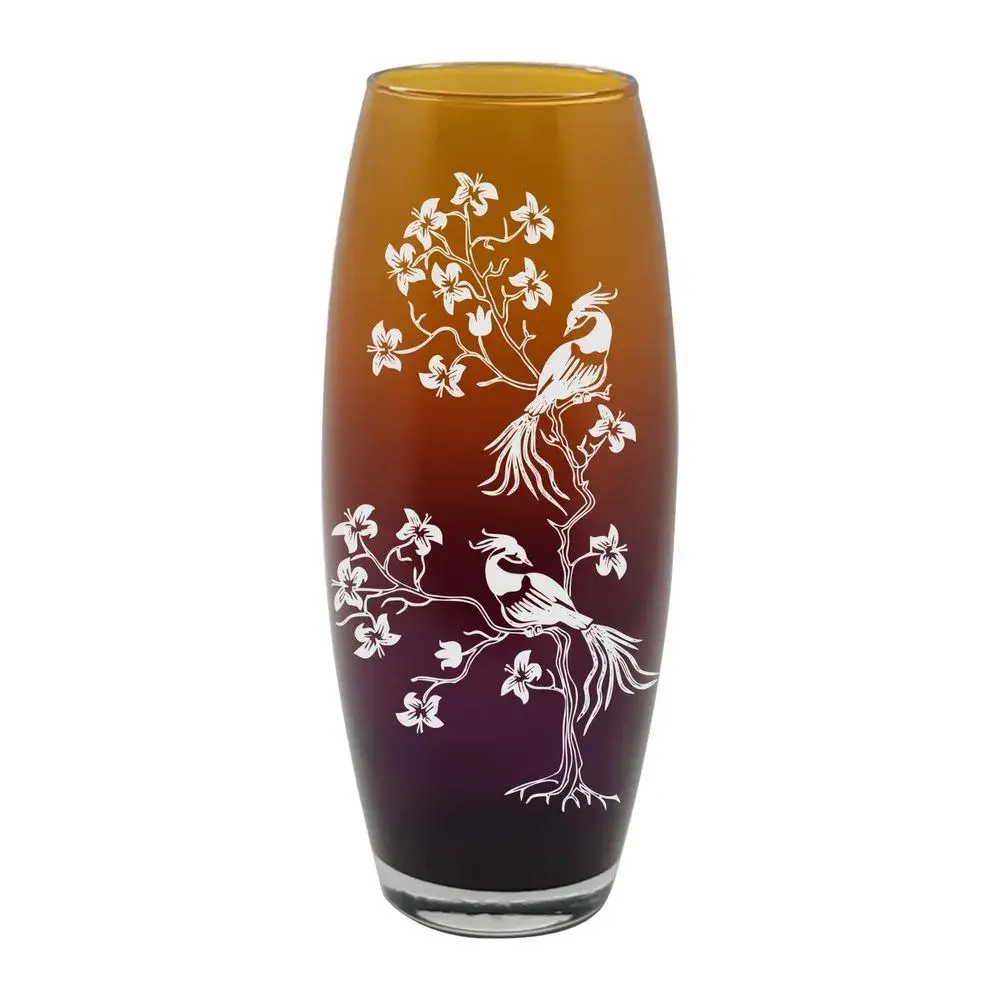 Подходит для использования на столах, полках или в витринах, эта ваза отлично смотрится как самостоятельный декоративный элемент, а также в композициях с сухими или искусственными цветами. Её изящная форма с сужением кверху и расширением внизу вместе с ярким декоративным рисунком в виде ветвистых веток и птиц создают уютную атмосферу и подчеркнут стилистику интерьера.