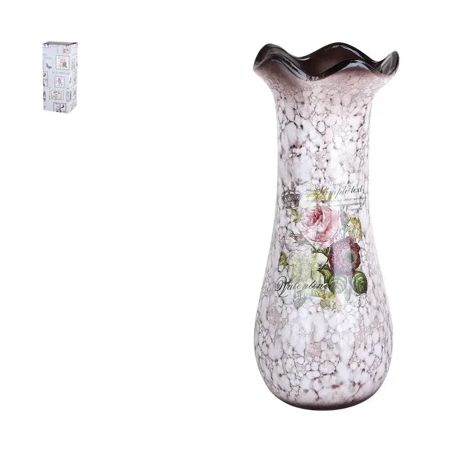 Ваза стеклянная декоративная с цветочным рисунком, H-30см, прозрачная с мраморным узором