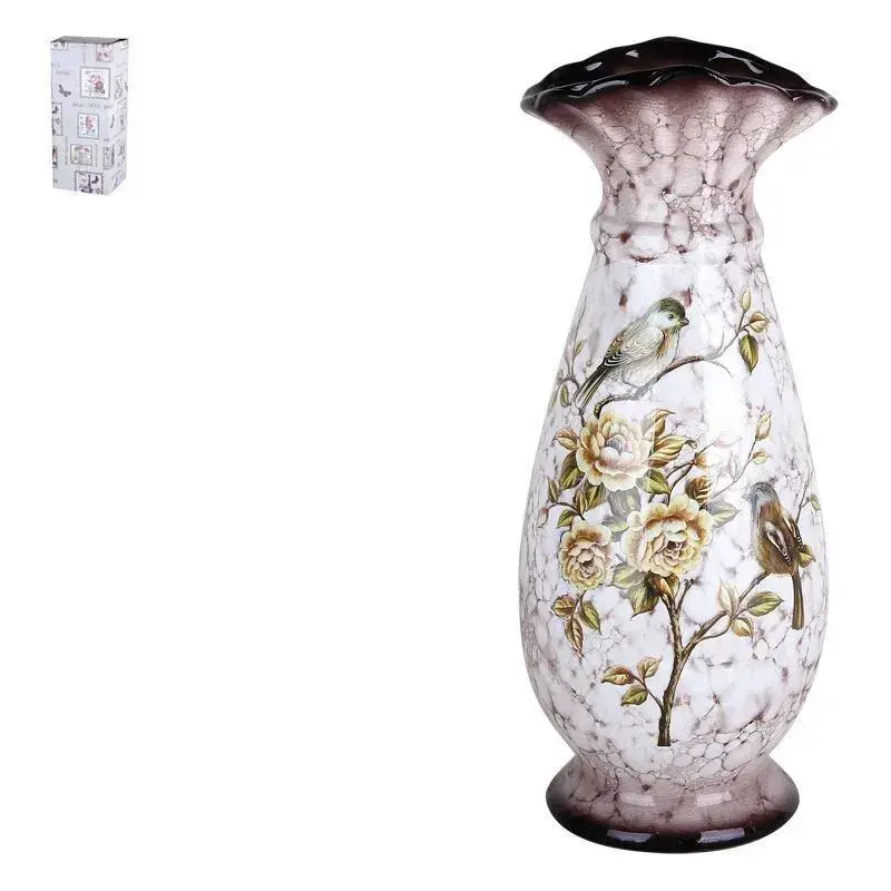 Ваза декоративная "Коралл" с росписью птиц и цветов, 30 см, цвет в ассортименте