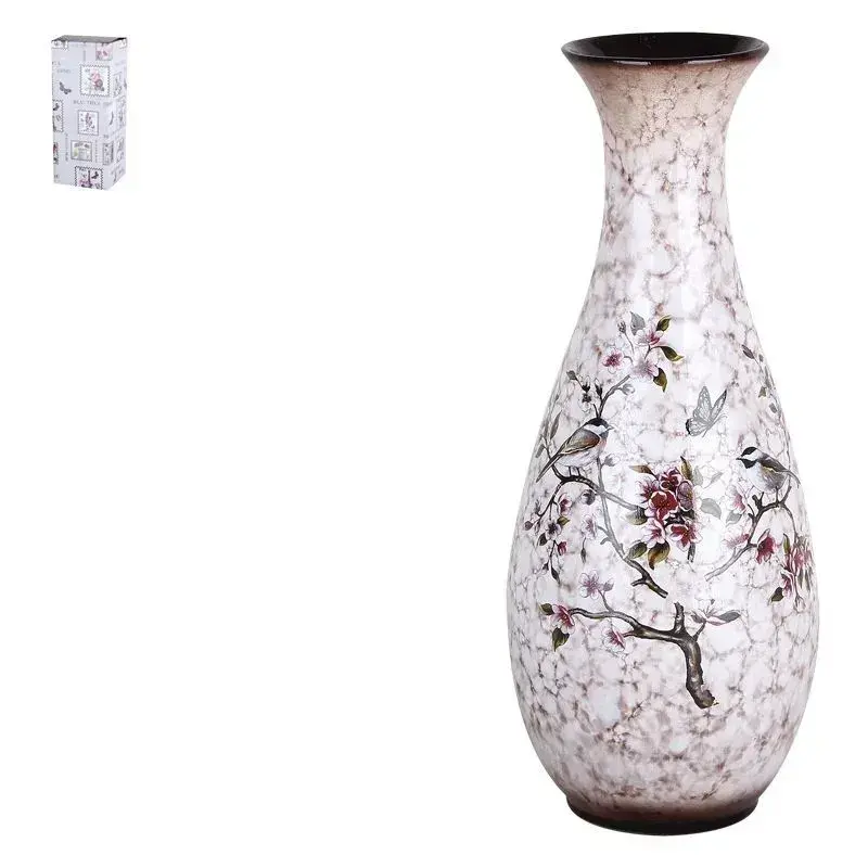 Ваза керамическая «Коралл» с ручной росписью, узор птицы и цветы, высота 30 см, белый/коричневый/розовый