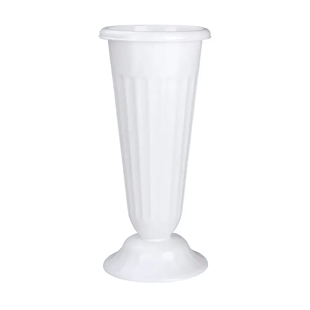 Ваза для цветов высотой 44см, диаметр 21см, белый пластик, устойчивое основание