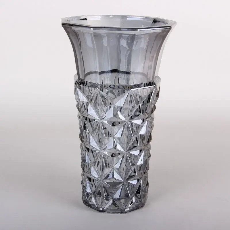 Стеклянная ваза с геометрическим узором создаст изысканный акцент в вашем доме. Идеально подходит для свежих букетов, декоративных композиций или использования в качестве стильного элемента сервировки.