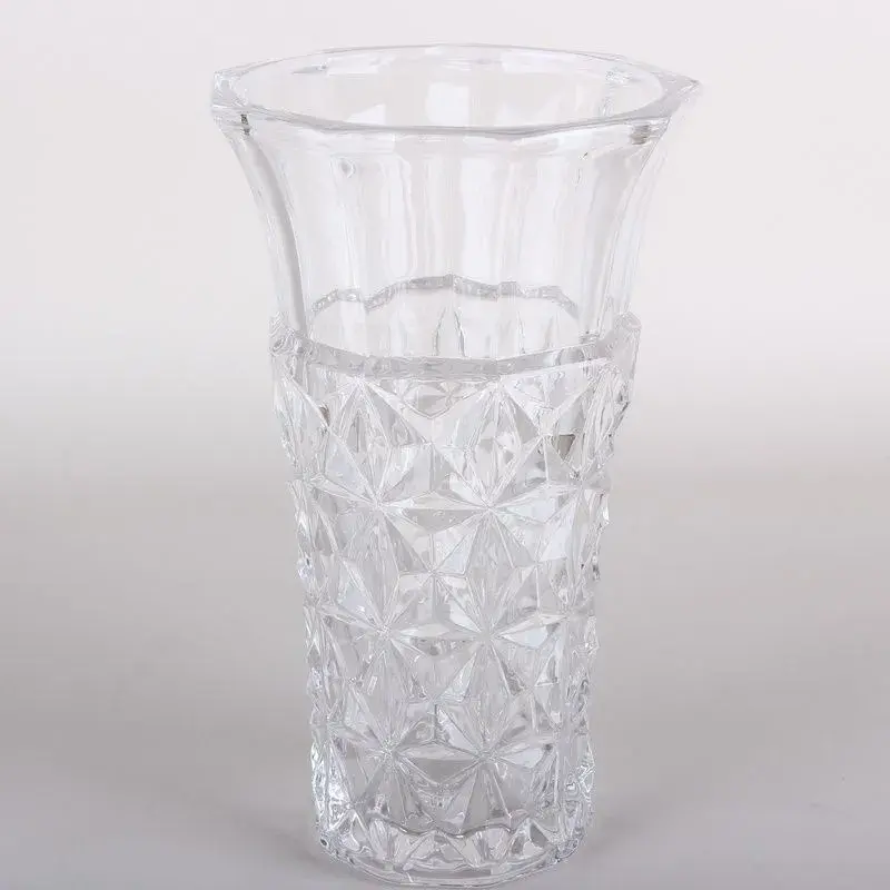 Ваза стеклянная декоративная с геометрическим узором, 13 см, прозрачная