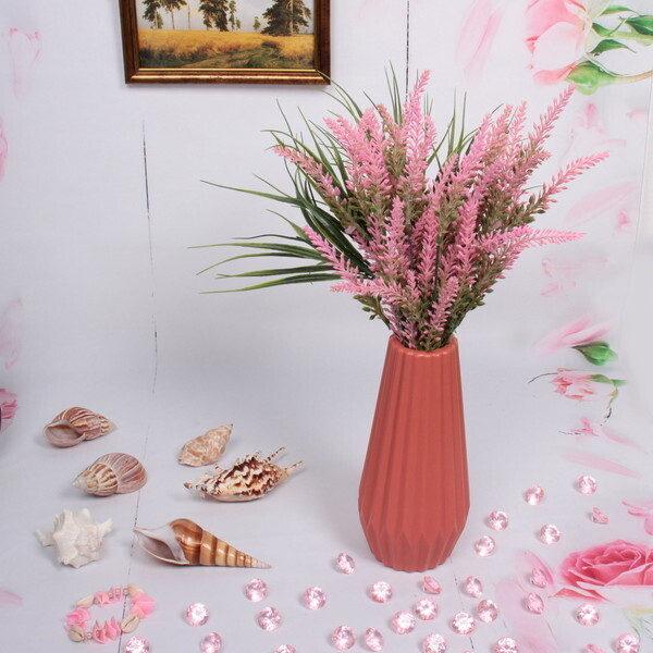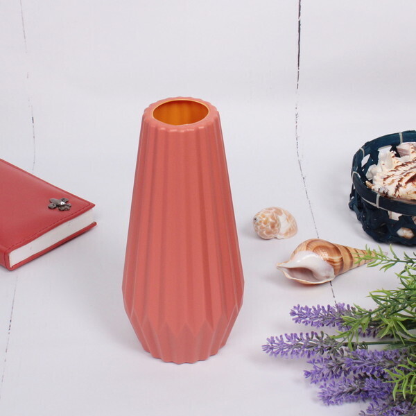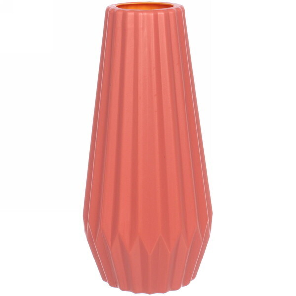Размеры вазы составляют 21 см в высоту, 5,6 см в ширину и 9,5 см в глубину. Коралловый цвет добавляет яркости и свежести в ваш интерьер. Ваза выполнена из качественного пластика, что гарантирует ее долговечность и устойчивость к внешним воздействиям.