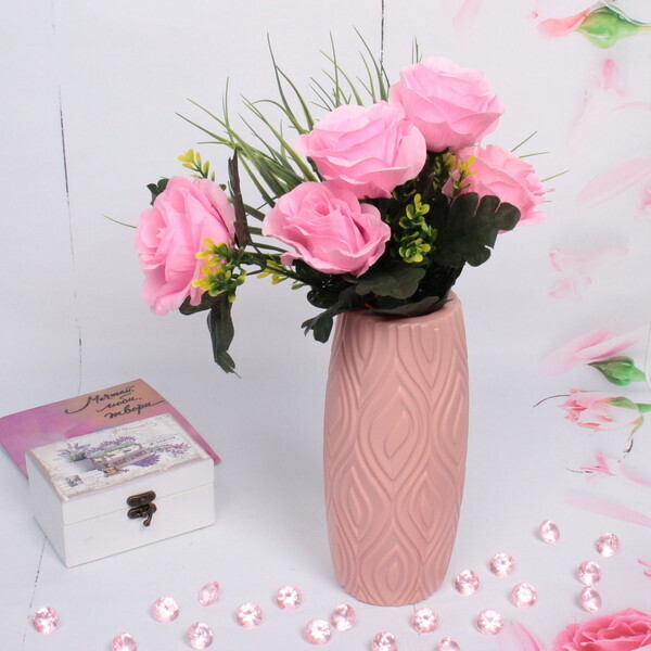 Ваза из пластика «Marlen-Грейс» — это идеальное решение для создания уютной атмосферы в вашем доме. Ее стильный розовый цвет и рельефный узор привнесут нотку изысканности в любое пространство. Эта ваза не только украсит ваш интерьер, но и станет практичным аксессуаром для размещения цветов.