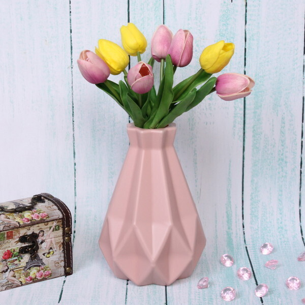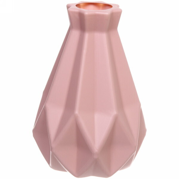 Ваза выполнена из качественного пластика, что гарантирует её долговечность и устойчивость к внешним воздействиям. Розовый цвет и асимметричная форма с выраженными гранями делают её не только функциональной, но и эстетически привлекательной. Используйте вазу для создания уникальных композиций с цветами или как самостоятельный элемент декора, который будет радовать глаз.
