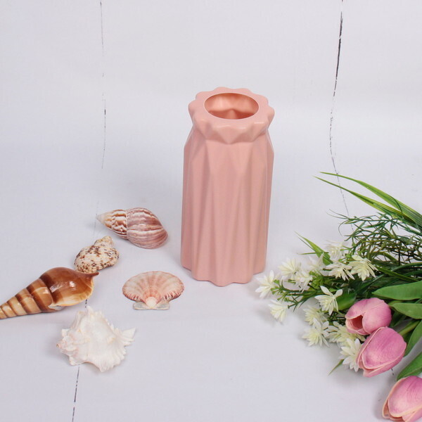 Ваза выполнена из качественного пластика, что гарантирует её устойчивость к повреждениям. Неровная текстура создает эффект складок, добавляя оригинальности. Округлое отверстие в верхней части вазы позволяет удобно размещать цветы, а её стильный дизайн делает её отличным подарком для друзей и близких.