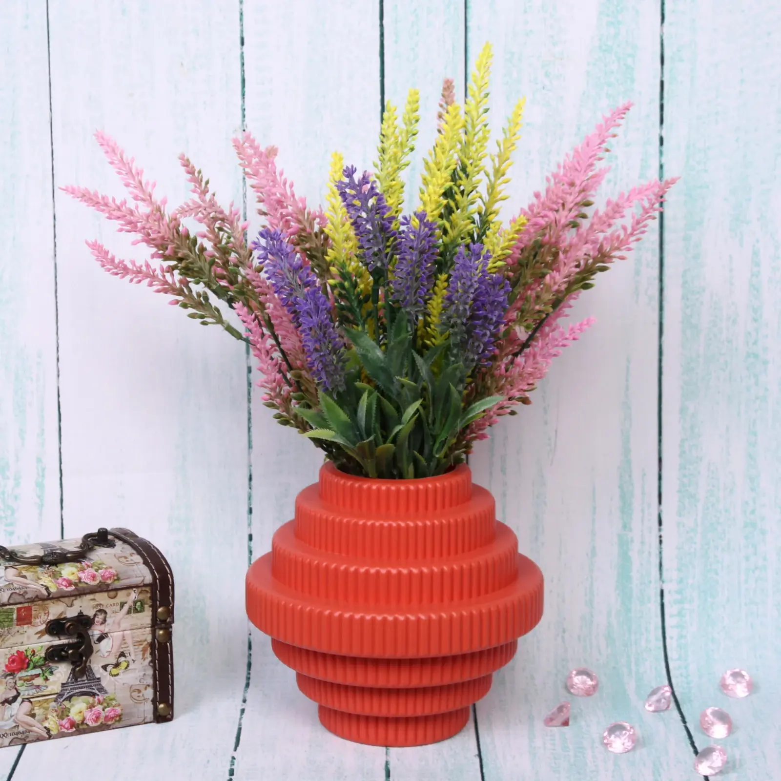 Эта ваза подходит как для живых, так и для искусственных цветов. Её гармоничные пропорции позволяют использовать изделие как настольный элемент декора, так и самостоятельный акцент в интерьере. Круглый проём обеспечивает удобное размещение композиций, а прочный пластик облегчает уход и долговечность.