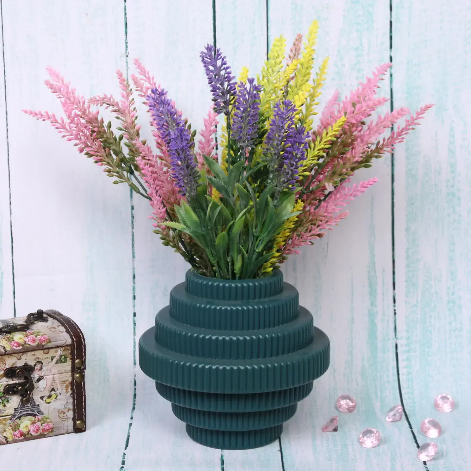 Эта пластиковая ваза в изысканном цвете морской волны станет стильным украшением вашего дома, офиса или студии. Благодаря элегантной ступенчатой форме и рифлёной поверхности, она гармонично вписывается в современный и классический интерьер, создавая атмосферу уюта и изысканности.